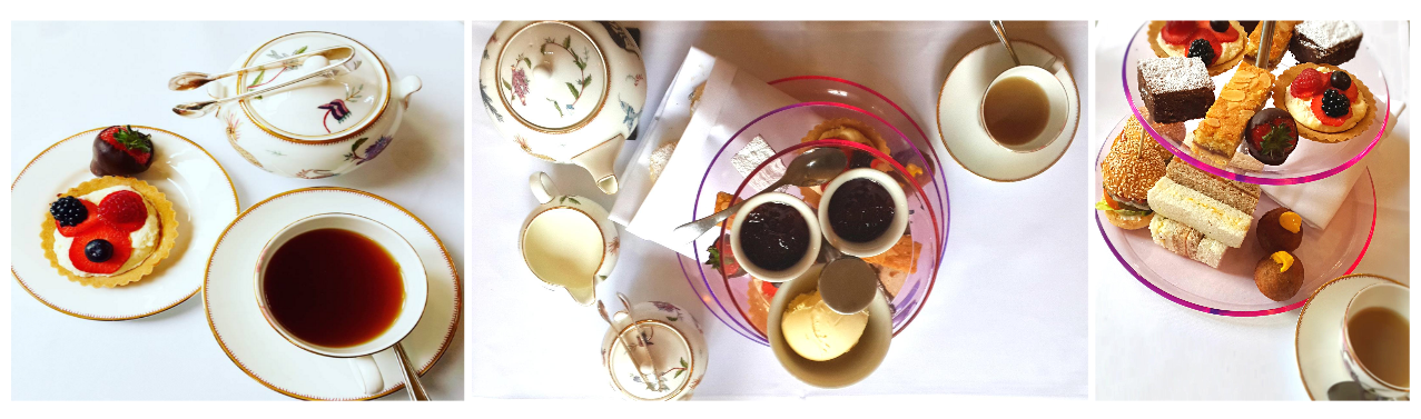 The tea selection comprises a wide range from Halmari Assam, Osmanthe Oolong, Silver Needle to Jasmine Pearls. As admitted earlier tea sets are one of my quirks bordering obsession and then Orangery serves me the chosen Halmari Assam in one of the prettiest tea sets I have laid my hands on. Suddenly I was in the tight clasp of my obsession finding it rather difficult to focus on the tea. The tea set is custom designed for all Firmdale Hotels with a mythical creature theme. Gilded on the rim each piece of the set has a blend of tradition and modernity to its design. A pink three-tier stand with the afternoon menu arrived and added a contrasting neon accent to the entire tea experience. The menu had the very traditional finger sandwiches egg watercress, cucumber and cream cheese and then some contemporary twists in the tale like mushroom arancini, mini cheese burgers, salmon and dill sandwich among savouries. The desserts too had a mix of both worlds from chocolate brownie to a fruit tartlet, Bakewell tart and chocolate dipped strawberries. The one constant was the selection of scones served traditionally with clotted cream and preserves. I always judge a menu y the way it balances flavours and enhances the experience. The sandwiches were the balancing act while the mushroom arancini added an elevation to my expectations from this traditional tea experience. My vote for the best dessert on the menu goes to fruit tartlet and Bakewell tart for adding the needed delicacy to conclude the afternoon.