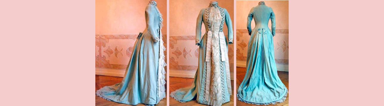 Tea Time Trends : There are influences from the past era and the 16th & 17th century that are seen on the designs of the tea gown. Bows and lace at the front opening did show the influence of the previous century. Necklines would range from a square shape to the heart shape with decorative borders and laces. The loose open robe with plastron and Watteau pleats at the back was one of the patterns of the tea gown that saw its end during the last decade of the 19th century. The high neckline and Watteau pleats with an open robe that covered an underdress takes it inspiration from the French monarchy and one of these gowns were even named after Louis XV suggesting the inspiration behind the design. In the early 1890s, the tea gown hues got brighter and the materials kept getting richer. Tea gowns were also cut as a tea-jacket and skirt and morphed into a dinner dress in the 1890s. Victorian fashion trends could be distinguished by the size of the bustle and the sleeves. The sleeves of tea gowns transformed as the patterns of the gown itself. During the early years of the trend the gowns had long close-fitting sleeves or at elbow length. However towards the end of the century, the sleeves grew larger and fuller literally wearing one’s social standing on your sleeve.
