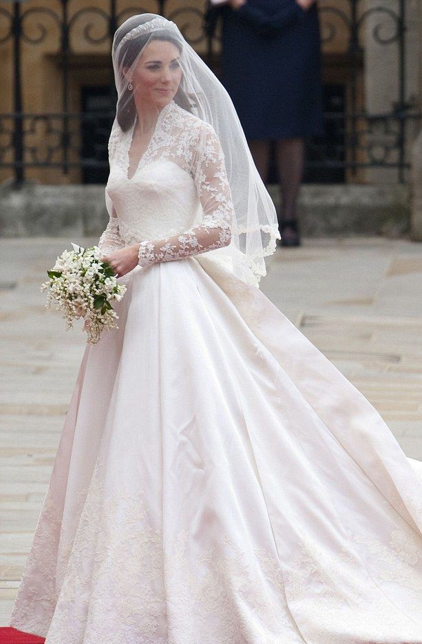 After the on again and off again with Prince William for 8 years they finally put Diana’s ring on it. Beaming with happiness and relief Kate Middleton was ready to take on the monumental expectations of a royal wedding that Diana left unchallenged by many brides after her. Kate was marrying a very different British royal from that of her mother-in-law, her’s was the love of her life and she was loved back. Britain was different, the world was different in 2011 from thirty years before the wedding. Prince William was the fresher, younger more approachable face of the monarchy and perhaps one of the two people of the royal household who could keep stoking the embers of public interest. Kate’s wedding could fan a flame of public approval to her future as a royal. Media was already chasing her since her college days thanks to her choppy relationship with William so her choice of the dress had higher stakes than that of her mum-in-law. Channeling her inner Grace Kelly but with a discreet V neck, Catherine Middleton chose Sarah Burton of Alexander McQueen to design her gown. Let’s be very honest her dress was not running a competition with Princess Diana but it was aimed at the modern classy bride of the 21st century who appreciated traditions. While the overall design resembled Princess Grace’s conservative bridal attire, Sarah Burton used both ivory and white colors in satin gazar. Satin gazar is known for wedding gowns as the stiffness of the fabric helps it to hold the gown in shape. The intricate applique of the bodice was done at the Royal School of Needlework and used Sophie Hallette silk tulle. There were flowers like roses, lilies, shamrock on the bodice. French Chantilly and English Cluny lace were used along with tulle and satin gazar to give the skirt and underskirt of the gown a blooming flower look. Sarah Burton was mindful of the time when the maid of honor would hold up the 9-foot train and the underskirt would be visible hence she dressed it in tulle skirt. The back of the bodice had 58 gazar buttons to finish the look. Unlike Grace Kelly, the skirt had no cummerbund but the thin waist of the bodice was accentuated by padding near the hips to plump the shape of the gown. The veil was held by a 1000 diamond studded tiara lent by the Queen which was a gift from her father King George VI to her mother Queen Mother. Much like Princess Diana, Kate’s gown also featured Carrickmacross lace representing Irish artistry along with British craftsmanship. Alexander McQueen complemented the sweeping gown with ivory satin heels with hand embroidered lace.