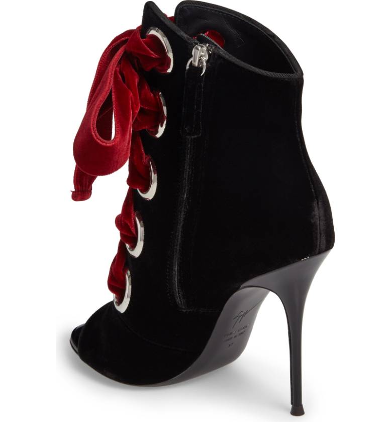Giuseppe Zanoti Velvet Lace Up Peep Toe 2